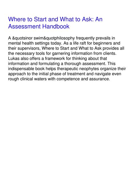 Read where to start and what to ask an assessment handbook Doc Gutenberg
